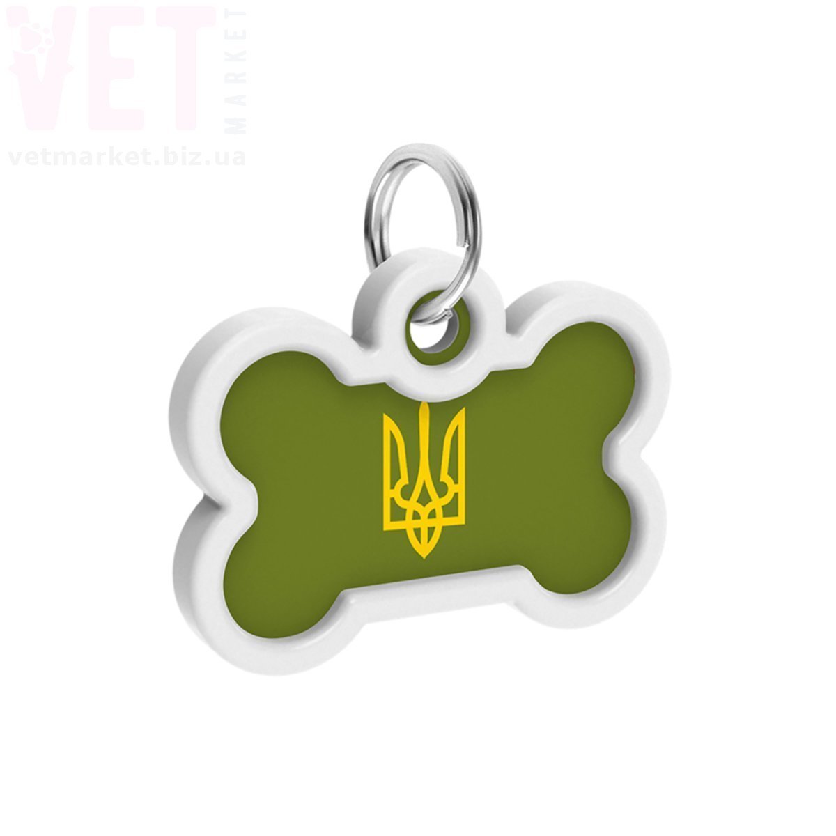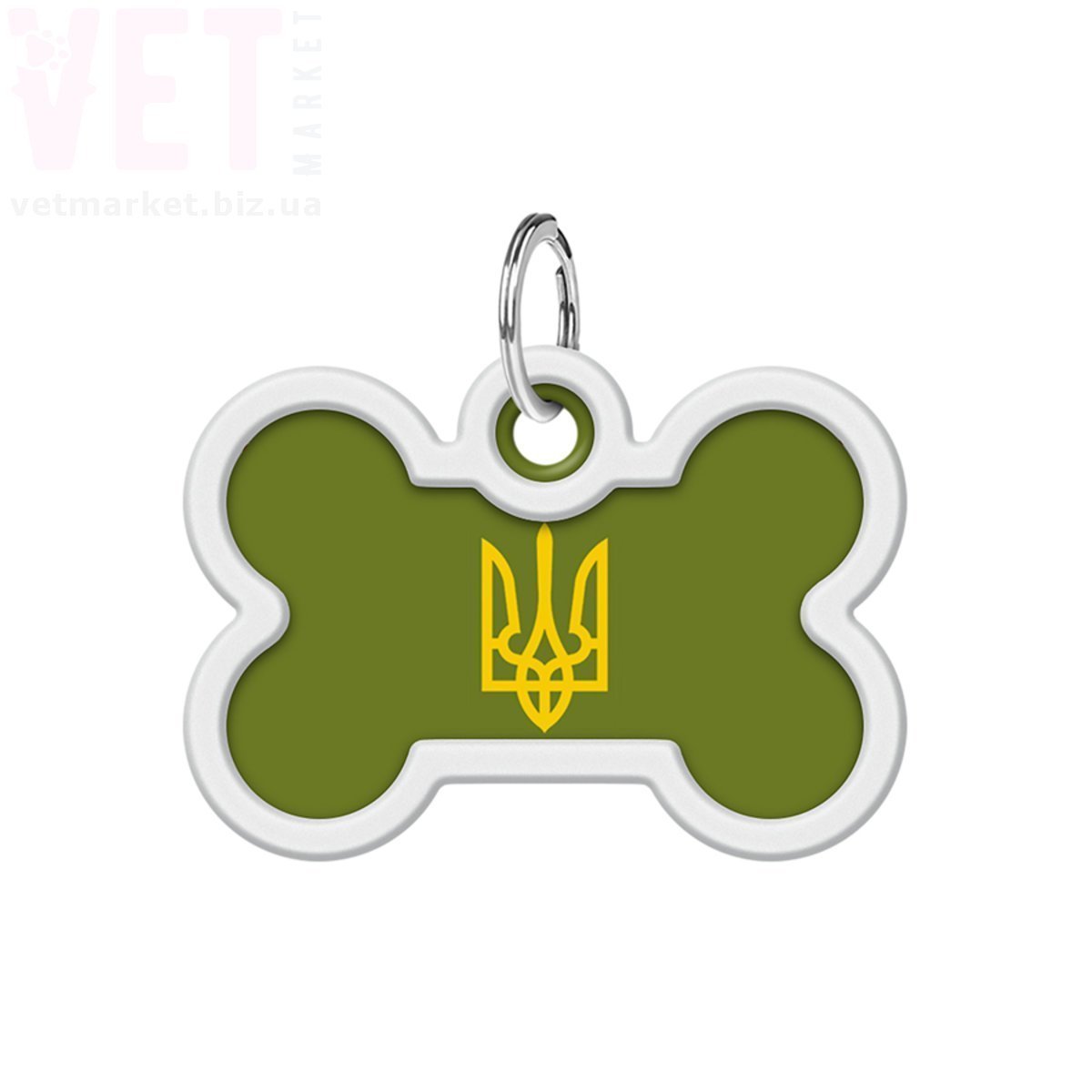 Адресник металевий WAUDOG Smart ID з QR паспортом, малюнок Тризуб олива, кістка