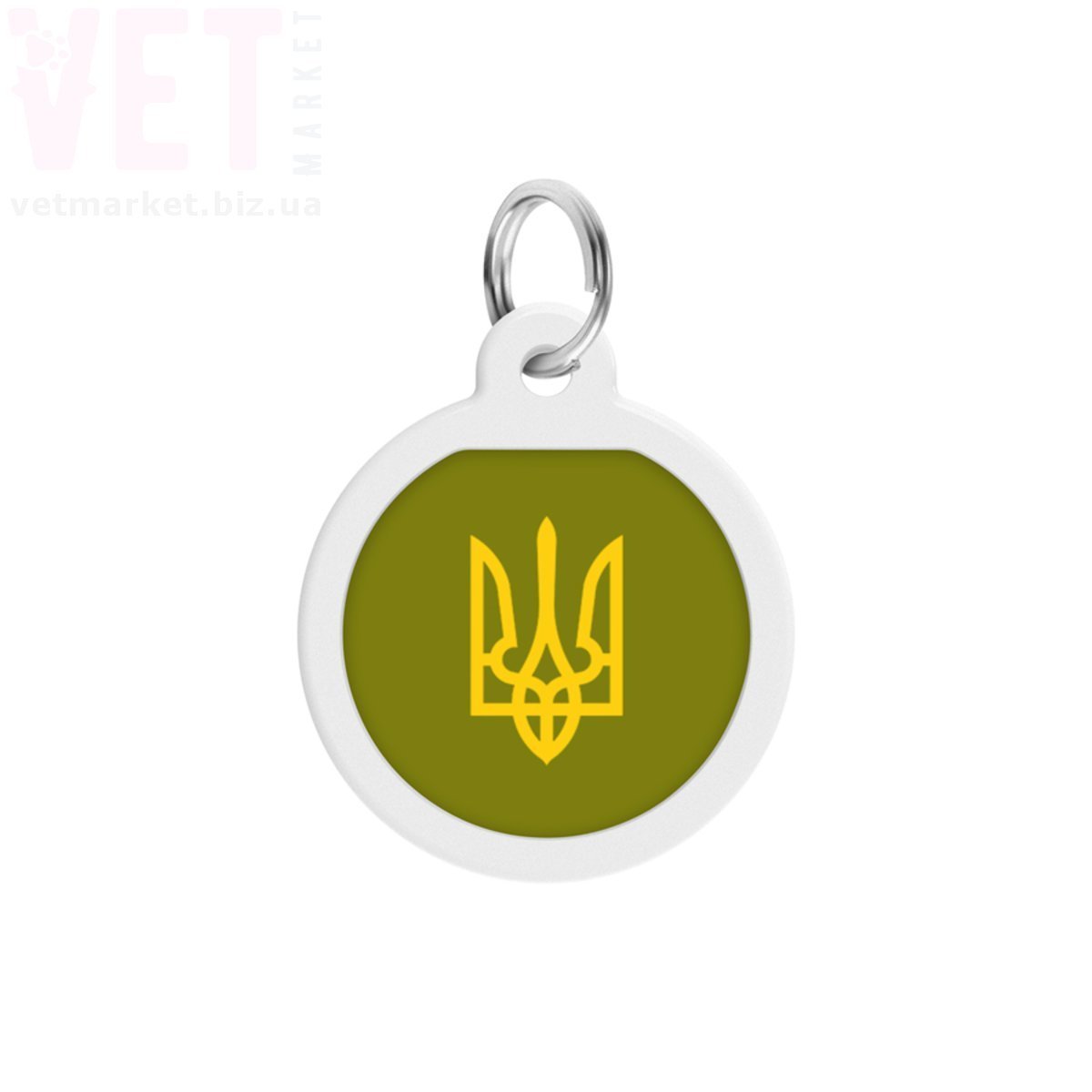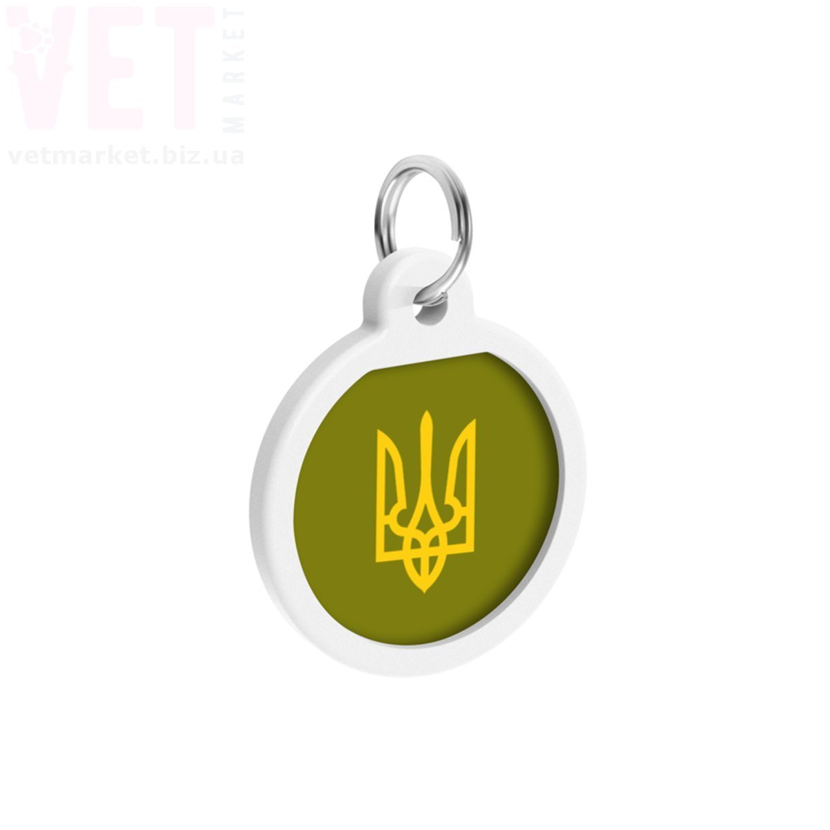 Адресник металевий WAUDOG Smart ID з QR паспортом, малюнок Тризуб олива, коло Д-25 мм