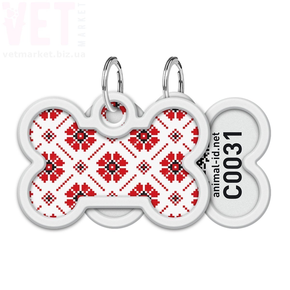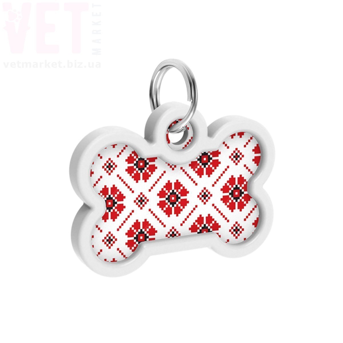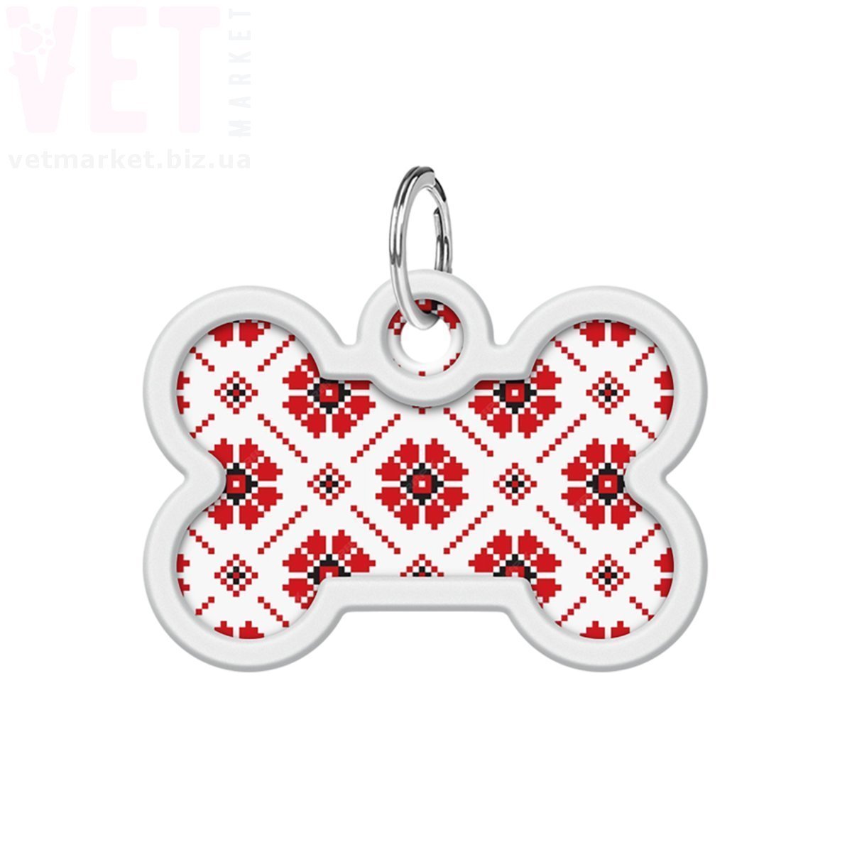 Адресник металевий WAUDOG Smart ID з QR паспортом, малюнок Вишиванка, кісточка