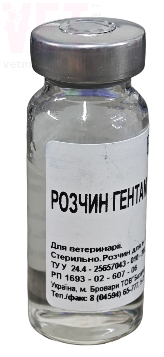 Применение: Лечение крупного рогатого скота, лошадей, овец, коз, свиней, собак и кошек, больных септицемией, артрит, дерматит, а также при заболеваниях пищеварительного тракта, органов дыхания, мочеполовой системы и кожи, вызванных микроорганизмами, чувствительными к гентамицину.