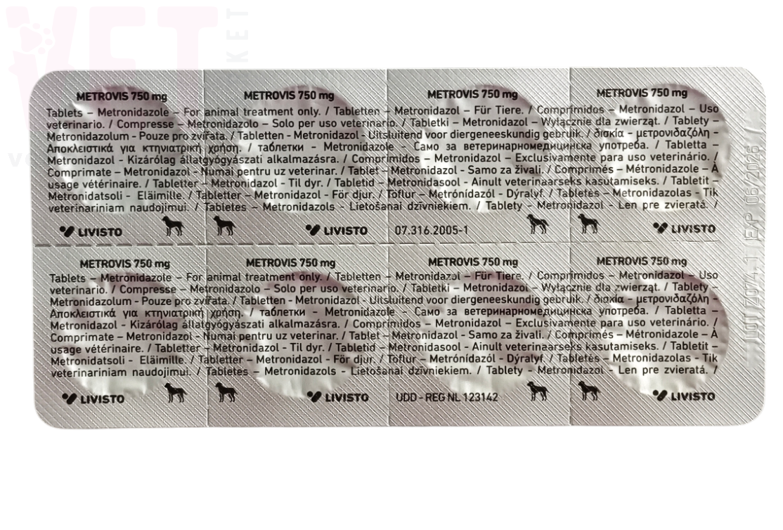 Рекомендуемая доза составляет 50 мг метронидазола на 1 кг веса тела в день в течение 5-7 дней. Суточная доза может быть разделена на два приема в день (т. е. 25 мг/кг веса тела дважды в день).