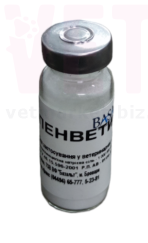 Применение: При катаральной бронхопневмонии, катаральной и крупозной пневмониях, заболеваниях мочеполовых органов, сепсисе, гнойном перитоните, роже свиней, плевропневмонии крупного рогатого скота, лептоспирозе, актиномикозе, сибирской язве, чуме собак, рините, маститах и других заболеваниях, возбудители которых чувствительны к пенициллину. Пенвентин можно применять в сочетании со стрептомицином, сульфаниламидными препаратами, специфическими сыворотками и глобулинами.