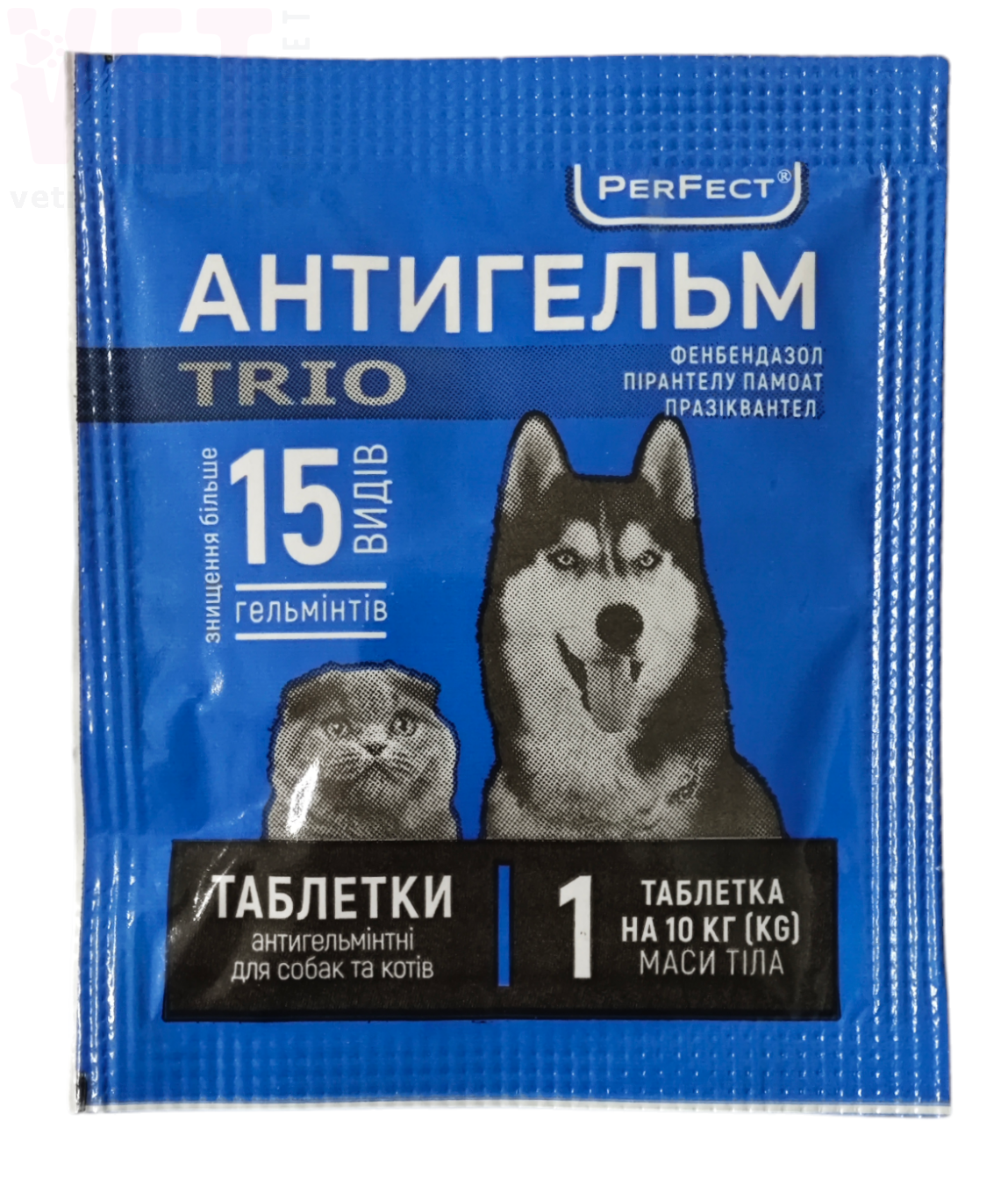 Препарат "АНТИГЕЛЬМ TRIO" – комбинированный препарат, в состав которого входят фенбендазол, пирантелу памоат и празиквантел. Широкий спектр антигельминтной активности на разные стадии развития круглых и цепневых гельминтов у собак и кошек обусловлен фармакологическими свойствами компонентов препарата.