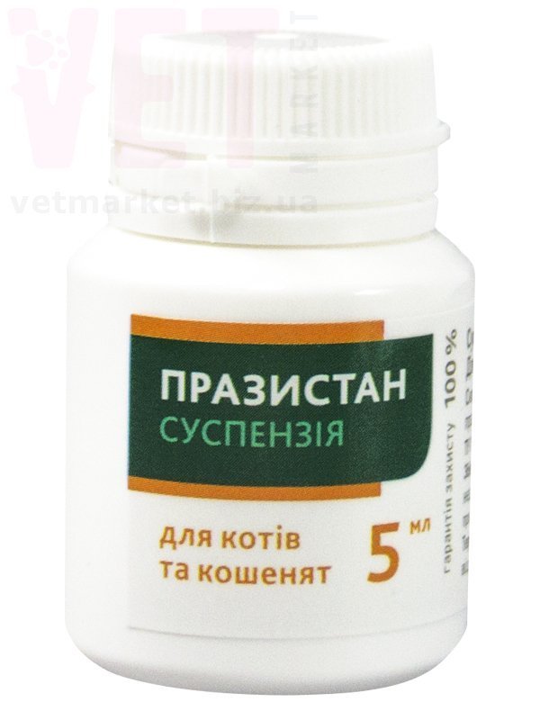 Празистан суспензия для котов и котят, 5 мл - антигельминтный препарат широкого спектра действия для профилактики и лечения при нематодозах и цестозах у котов.
