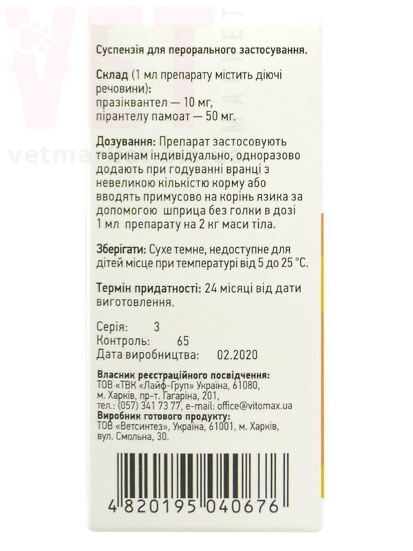 Празистан суспензія для котів та кошенят, 5 мл, Vitomax