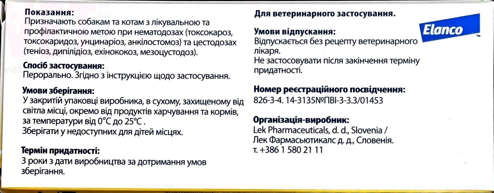 Состав и описание: пирантел эмбонат – 144 мг, празиквантел – 50 мг. Продукт в виде таблеток круглой формы, светло-желтого цвета.