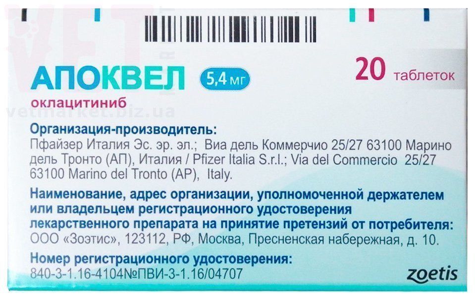 Архив/Апоквель 5,4 мг*20 табл., Zoetis (США)