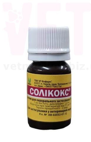 Диклазурил, который входит в состав препарата Соликокс, относится к малотоксичным веществам. Он действует на все виды кокцидий у птиц (Eimeria acervulina, Е. brunetti, Е. maxima, Е. mitis, Е. necatris, Е. tenella, E. adenoeides, Е. gallopavonis, Е. meleagrimitis и др.), кролей (E. flavescens, E. іntestіnalіs, E. magna, E. perforans, E. stіedaі и др.), крупного и мелкого рогатого скота, свиней (Іsospora suіs). Наиболее чувствительные к препарату неполовые стадии эндогенного цикла развития кокцидий. Диклазурил не вызывает отрицательных последствий даже при превышении рекомендованных доз в 25-50 раз. Препарат не обладает мутагенным, канцерогенным и тератогенным действиями, его можно применять с любыми кормовыми добавками, антибиотиками, кокцидиостатиками. Препарат термостабильный, эффективный в очень маленьких дозах, не накапливается в органах и тканях животных.