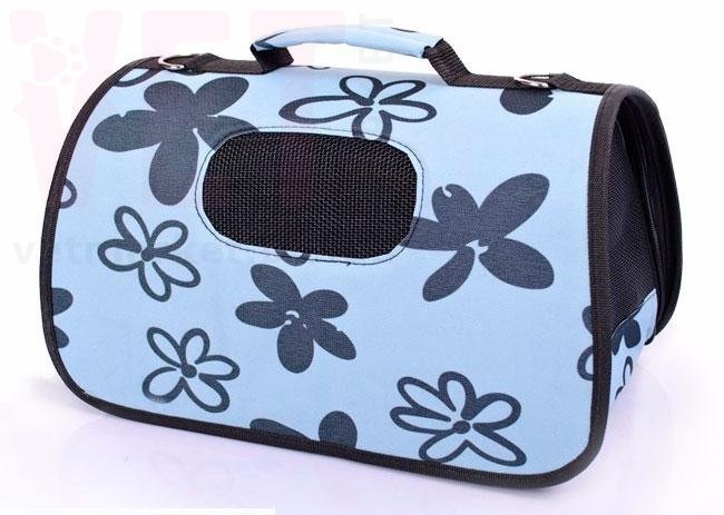 Стильная, удобная складная дорожная сумка-переноска с рисунками цветов на голубом фоне, предназначена для переноски и транспортировки кошек и собак мелких пород весом от 1 кг до 4 кг (размер S), от 4 кг до 8 кг (размер M), от 8 до 12 кг (размер L). Изготовлена из качественных и прочных материалов - нейлона, полиэстера и винила, гипоаллергенных и нетоксичных для животных. Сумка водонепроницаема, хорошо вентиллируется, благодаря широкому отверстию с прочной сеточкой вверху по средине сумки, а также застегиваемому входному отверстию с сеточкой. Оснащена удобной и крепкой ручкой. В комплект входит ремешок для переноски на плече. В сумке питомец будет чувствовать себя спокойно, комфортно и уютно при переноске или транспортировке. Изделие легко собирается и разбирается, благодаря прочным змейкам-застежкам. Легко чистится.