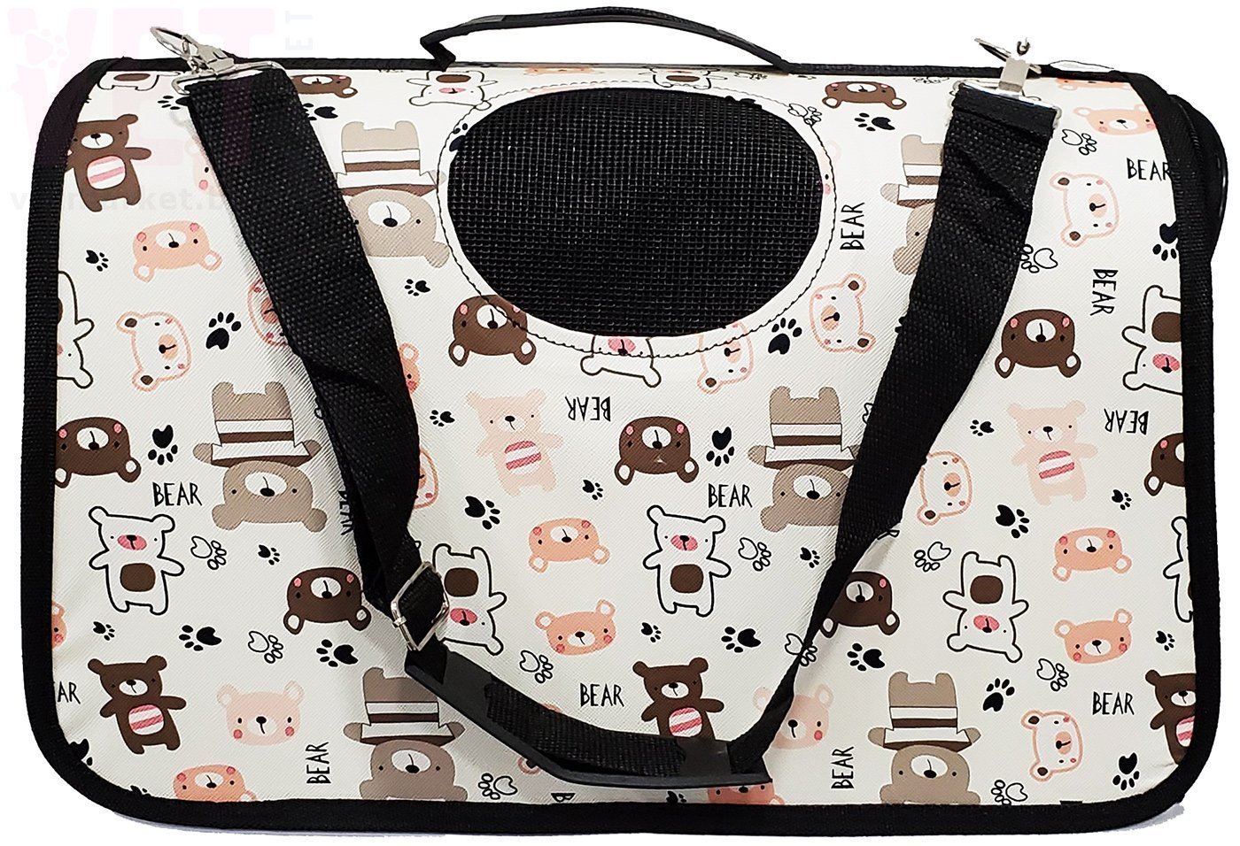 Складная дорожная сумка-переноска для животных с рисунком "Медведи". Предназначена для переноски и транспортировки животных (кошек, собак мелких пород, домашних декоративных грызунов) весом: от 3 кг до 5 кг (размер S), от 5 кг до 7 кг (размер M), от 7 до 10 кг (размер L).