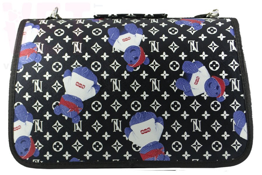 Cкладная дорожная сумка-переноска с рисунками. Предназначена для переноски и транспортировки кошек и собак мелких пород весом от 5 кг до 7 кг (размер M), от 7 до 10 кг (размер L). Изготовлена из прочных и качественных материалов - нейлона, полиэстера и винила, гипоаллергенных и нетоксичных для животных. Сумка водонепроницаема, хорошо вентеллируется благодаря широкому отверстию с прочной сеточкой вверху по средине сумки, а также застегиваемому входному отверстию с сеточкой. Оснащена удобной и крепкой ручкой. В комплект также входит ремешок для переноске на плече. В сумке питомец будет комфортно, уютно и спокойно себя чувствовать при переноске или траспортировке. Изделие легко собирается и разбирается, благодаря прочным змейкам-застежкам. Легко чистится.