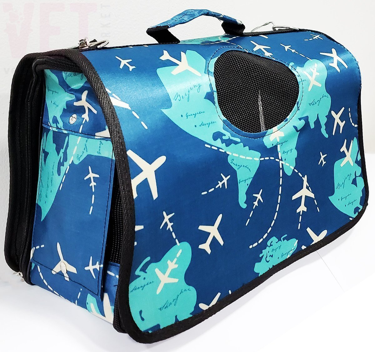 Складная дорожная сумка-переноска для животных с рисунком "Самолеты", цвет синий. Предназначена для переноски и транспортировки животных (кошек, собак мелких пород, домашних декоративных грызунов) весом: от 3 кг до 5 кг (размер S), от 5 кг до 7 кг (размер M), от 7 до 10 кг (размер L).