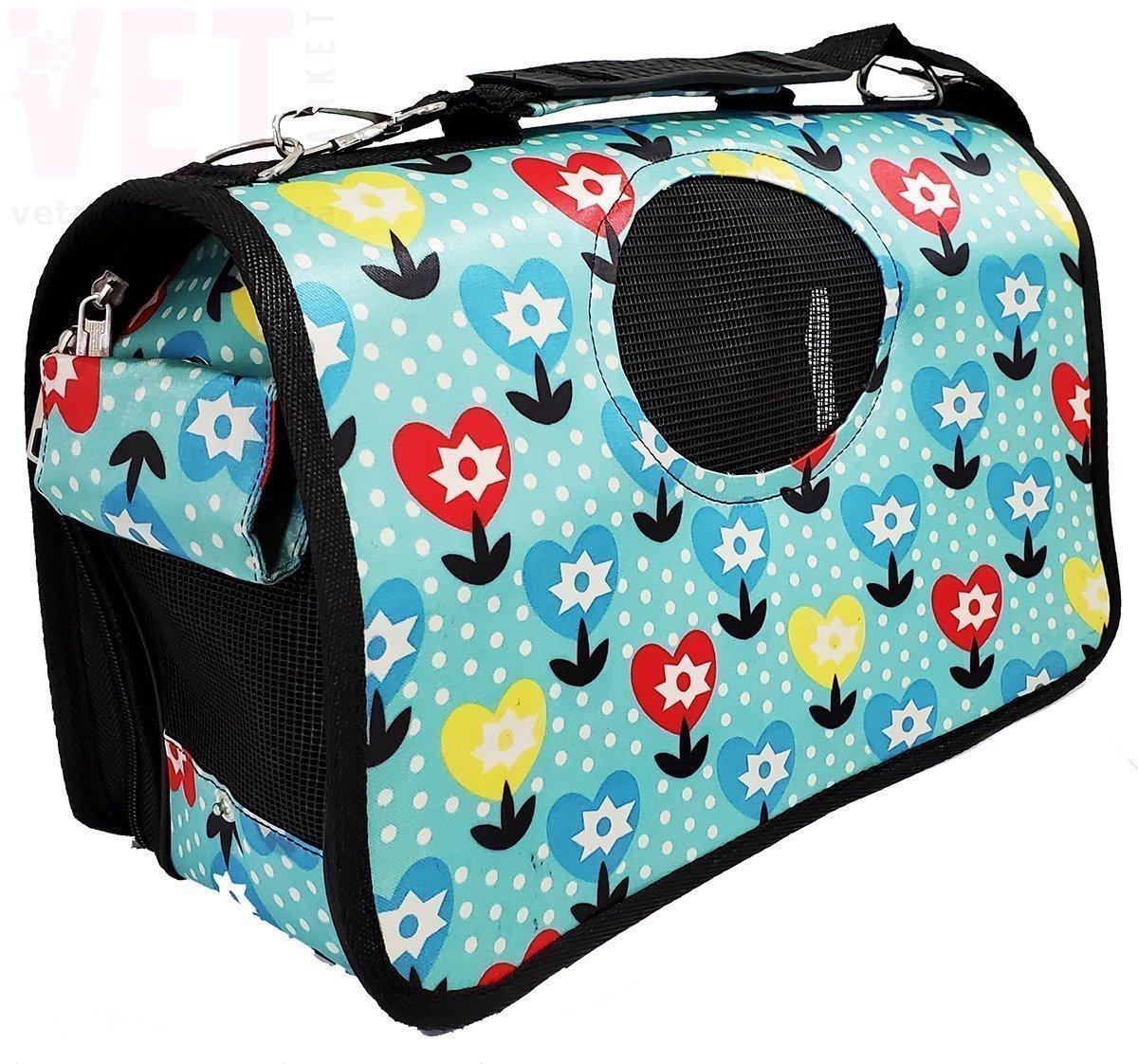 Складная дорожная сумка-переноска для животных с рисунком "Цветы". Предназначена для переноски и транспортировки животных (кошек, собак мелких пород, домашних декоративных грызунов) весом: от 3 кг до 5 кг (размер S), от 5 кг до 7 кг (размер M), от 7 до 10 кг (размер L).