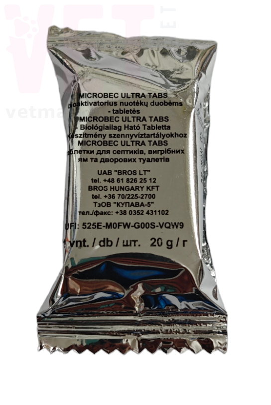 Microbec Ultra tabs (Микробек Ультра) – микробиологический препарат для биодеградации (биоразложения) и очистки септиков, содержания выгребных ям, дачных туалетов, сантехнических и канализационных установок и сооружений.