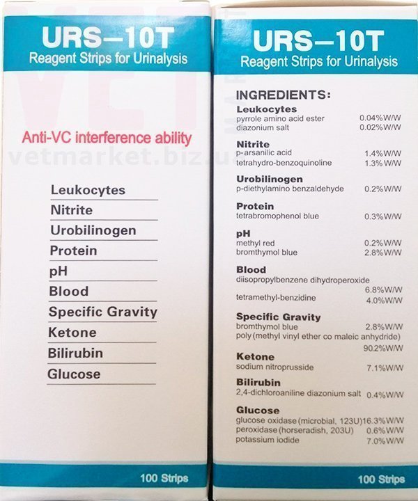 КоличествоТест-смужки для аналізу сечі URS-10T, 100 шт