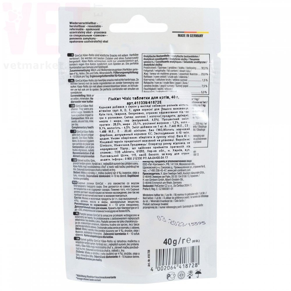 GimCat для котів таблетки з комплексом вітамінів сирні, 40 г, Gimpet