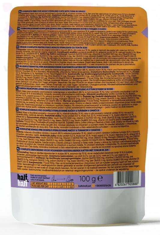 Half&Half вологий корм для стерилізованих котів з тунцем у соусі, 100 г