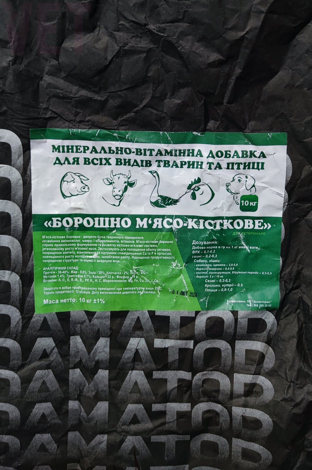 Борошно м'ясо-кісткове, 10 кг, Зооветпром