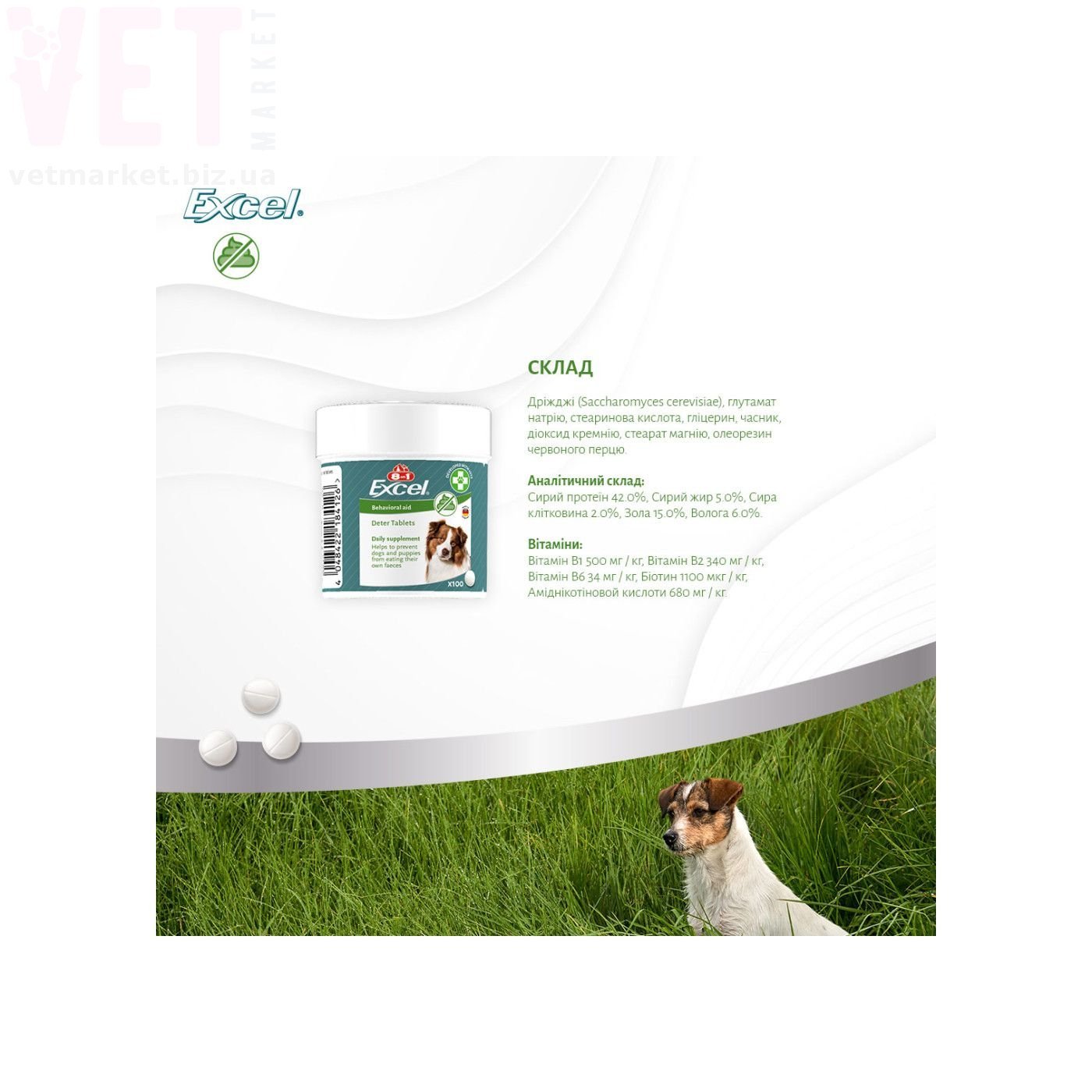 8в1 Excel Deter для собак від копрофагії, 100 шт.