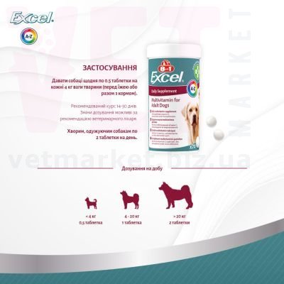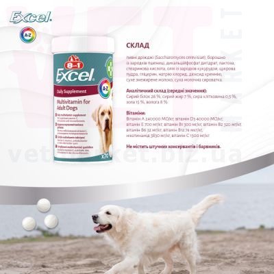 8в1 Excel Multi Vitamin Adult для дорослих собак мультивітамін, 70 табл.