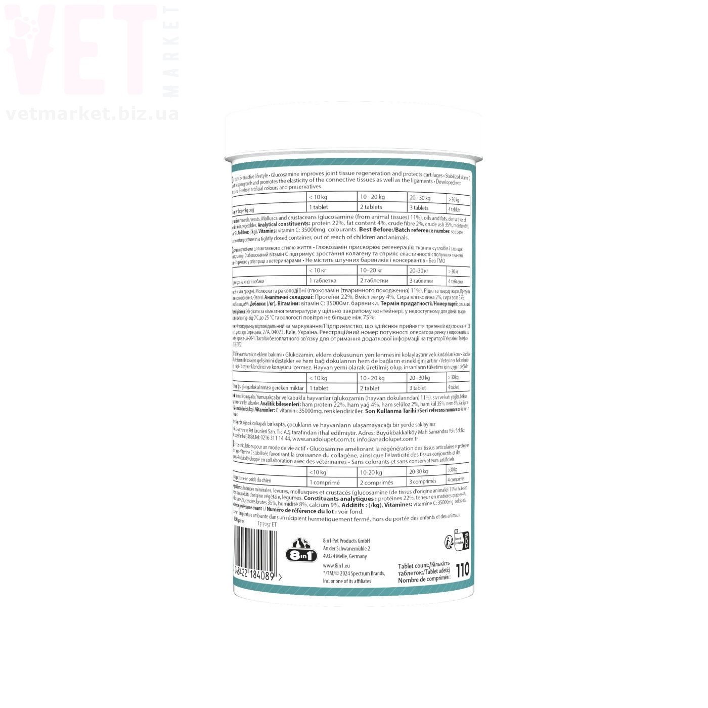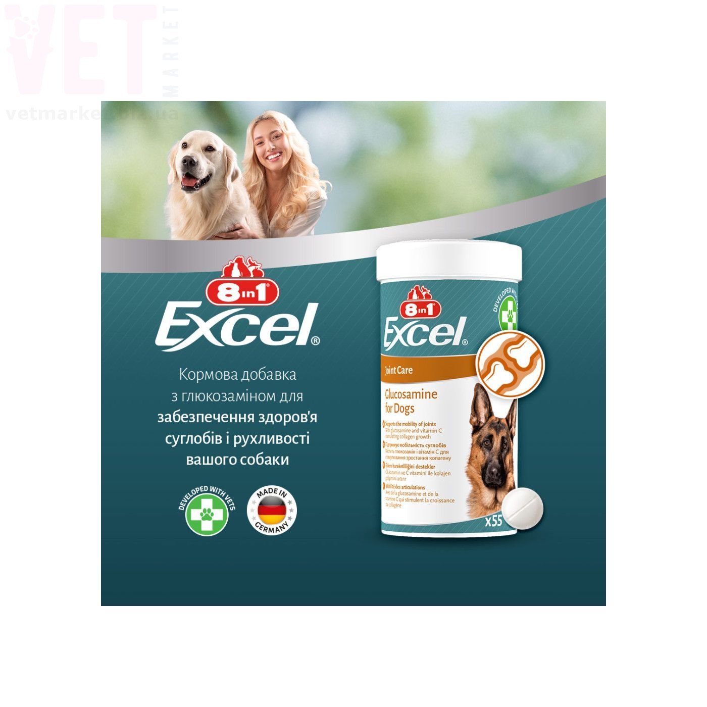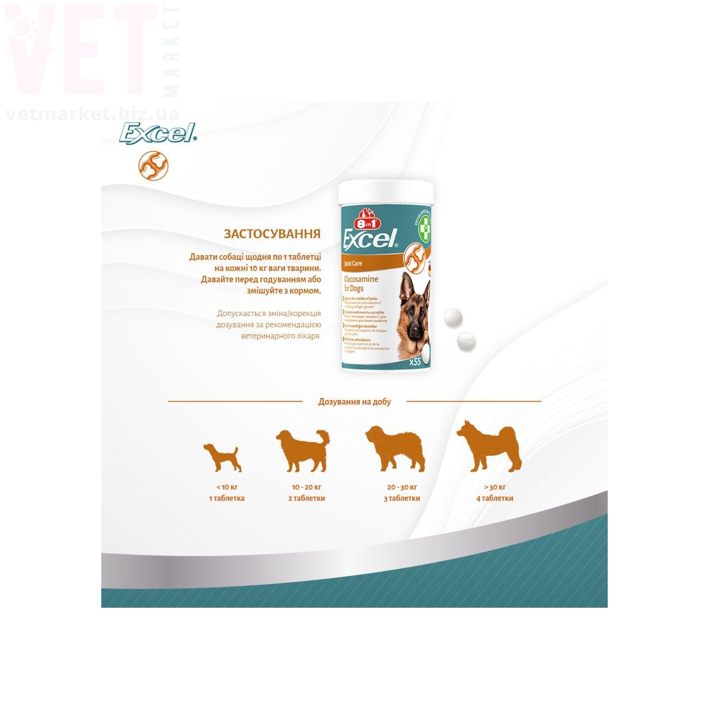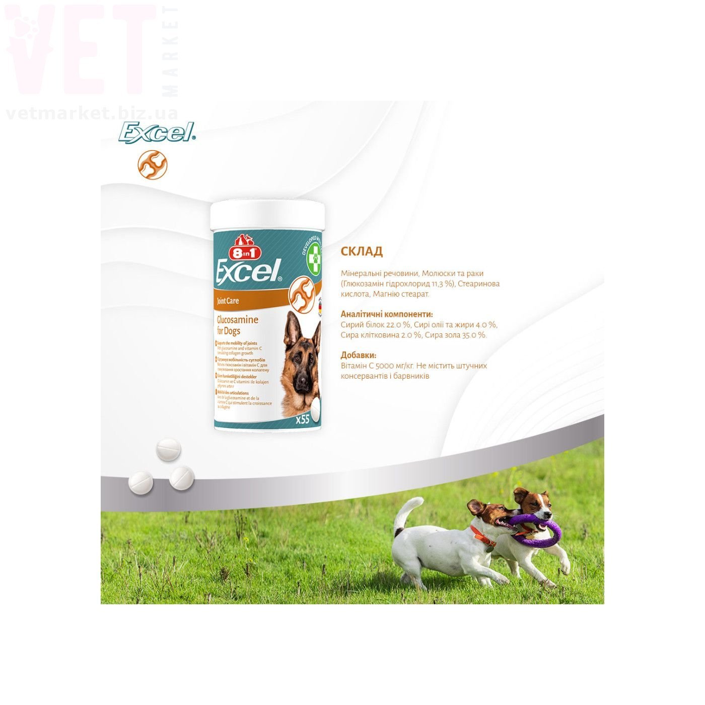 8в1 Excel Glucosamine для собак для суглобів, 110 табл.