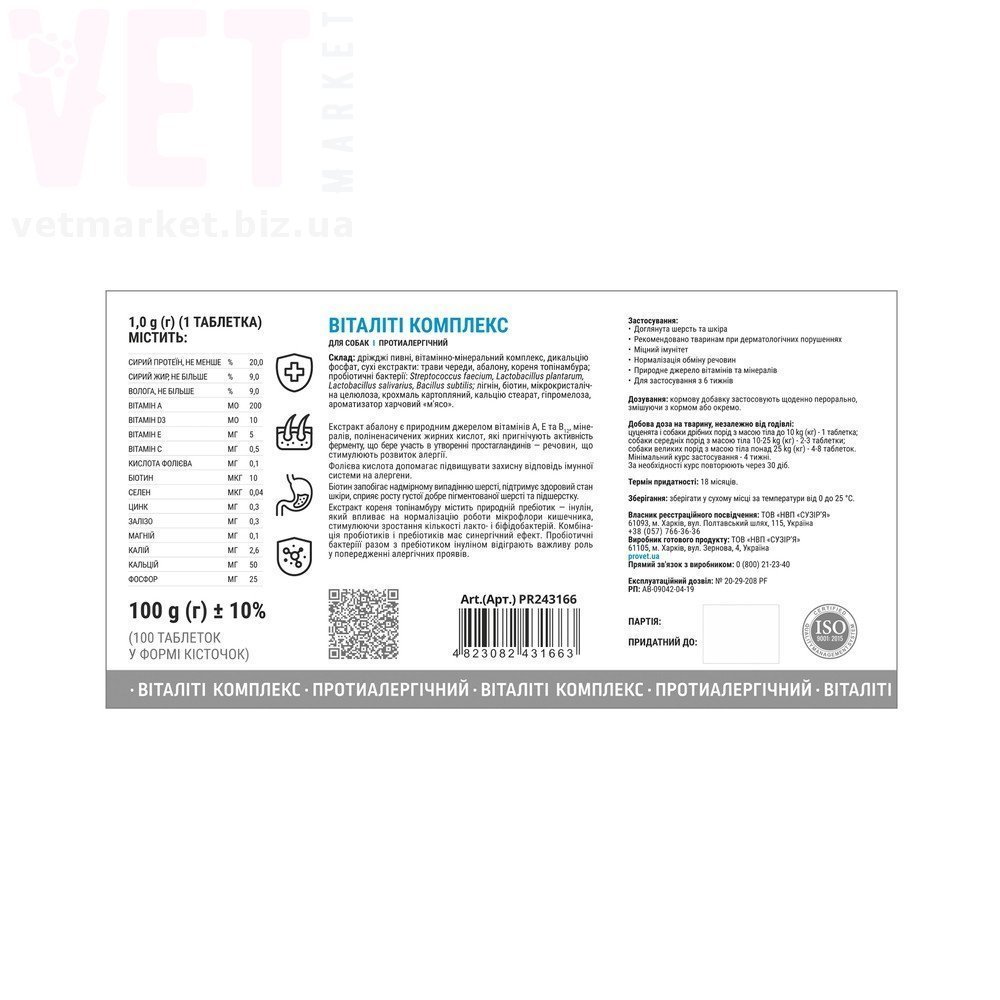 Профілайн для собак ВІТАЛІТІ комплекс протиалергічний, 100 табл., ProVET
