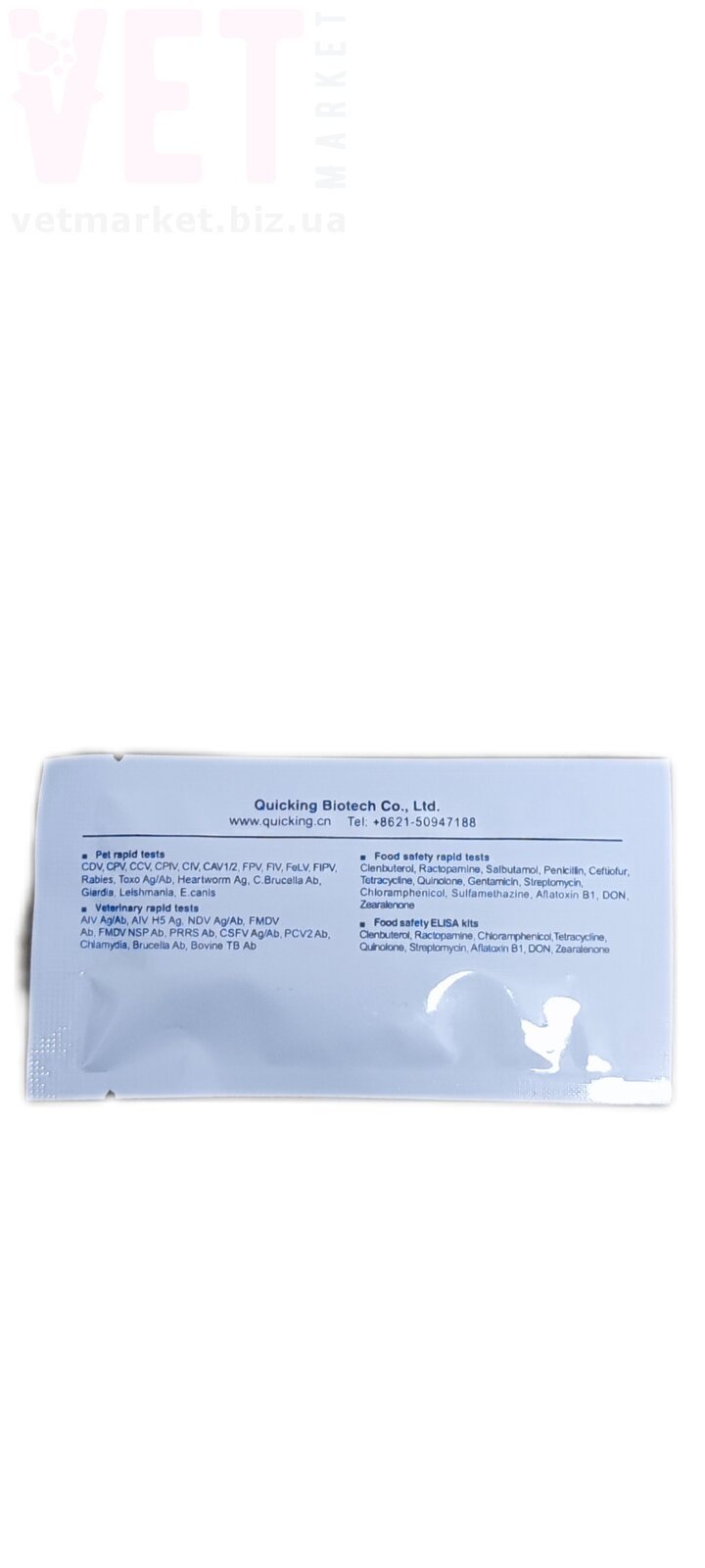 Експрес-тест на антитіла до лептоспірів собак IgG/IgM Quicking є імунохроматографічним аналізом з латеральним потоком для якісного виявлення собачих лептоспірів IgG та IgM у зразках сироватці крові або плазмі собак.