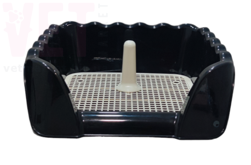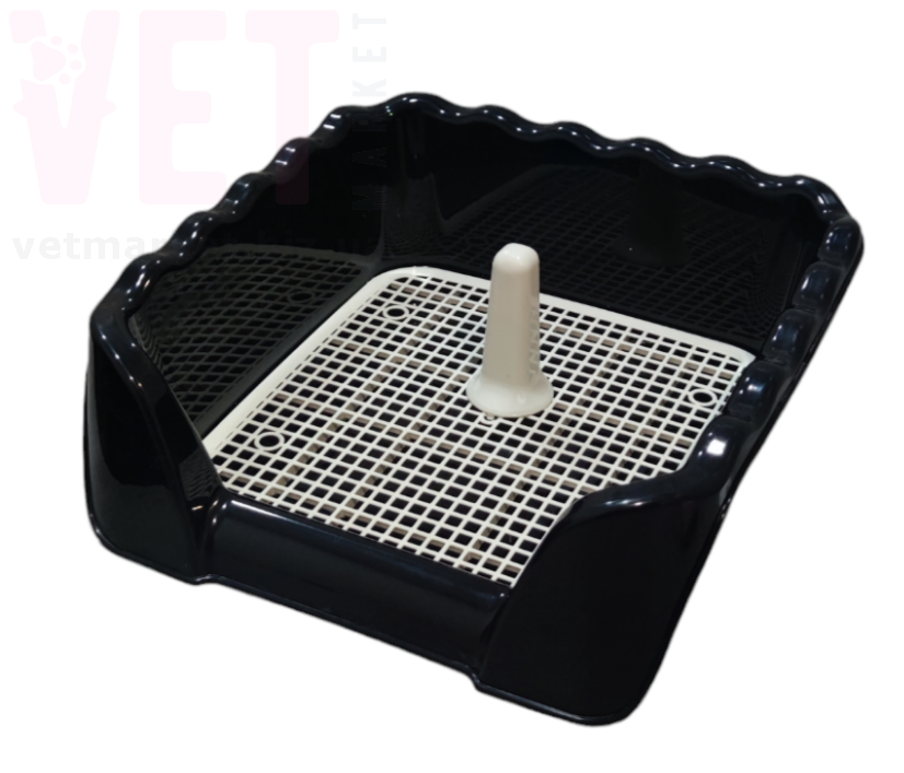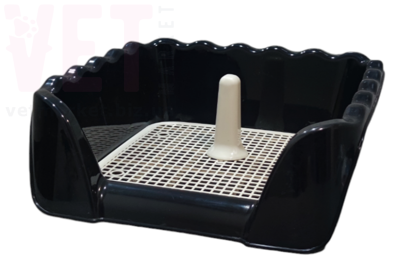 Туалет для животных состоит из поддона для сбора жидкости и съемной решетки, которая сохраняет лапки питомцев сухими и чистыми. Также имеется съемный столбик который поможет собаке справить нужду максимально комфортно. Портативный лоток изготовлен из нетоксичного полипропилена, который безопасен для животного и в то же время не позволяет размножаться бактериям. Лоток очень прочный и выдерживает вес до 50 кг.