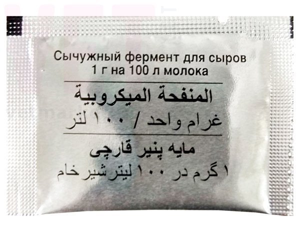 Фермент молокозгортаючий сухий, 1 г на 100 л молока - мікробіальний ренін застосовується при виробництві м'яких та твердих сортів сиру. Успішно використовується як у домашніх умовах, так і на виробництвах.