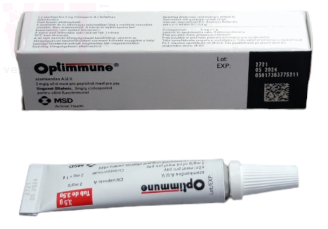 Оптіммун застосовують собакам для лікування хвороб очей аутоімунної етіології, включаючи ідіопатичний сухий кератокон'юнктивіт (СКК, синдром «сухого ока»), плазматичну інфільтрацію третього століття і хронічний поверхневий кератит (паннус).