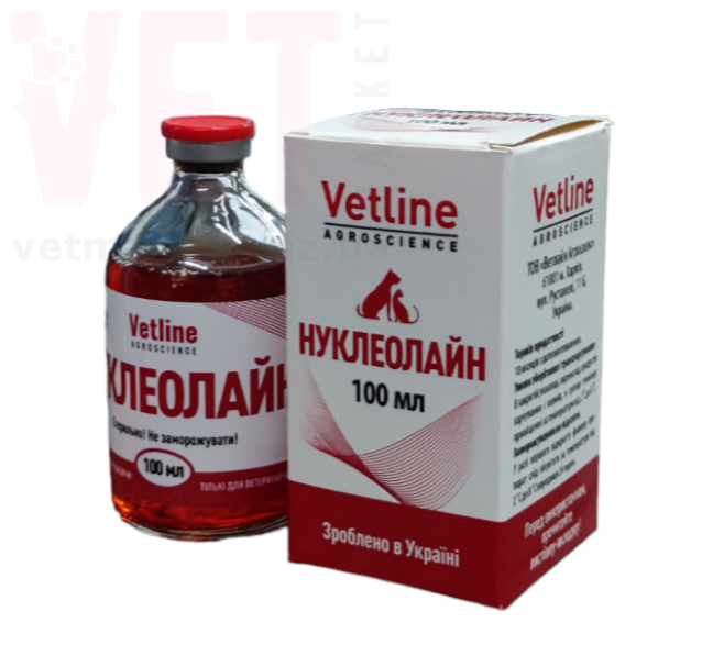 Собакам и котам Нуклеолайн применяется для увеличения прироста у молодняка и мышечной массы у взрослых животных, для восстановления и улучшения шерстяного покрова при кожных заболеваниях, затяжной линьке и у выставочных животных. Кроме того, Нуклеолайн применяется при хронических заболеваниях – отите, экземе, депматите, фурункулезе и др., отставании в росте и развитии, гипотрофии, а также для повышения резистентности организма.
