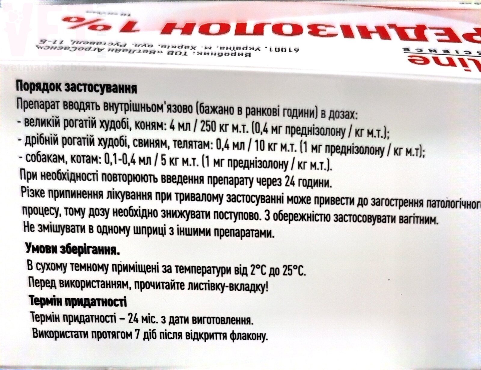Преднізолон 1%, 10 мл, Vetline