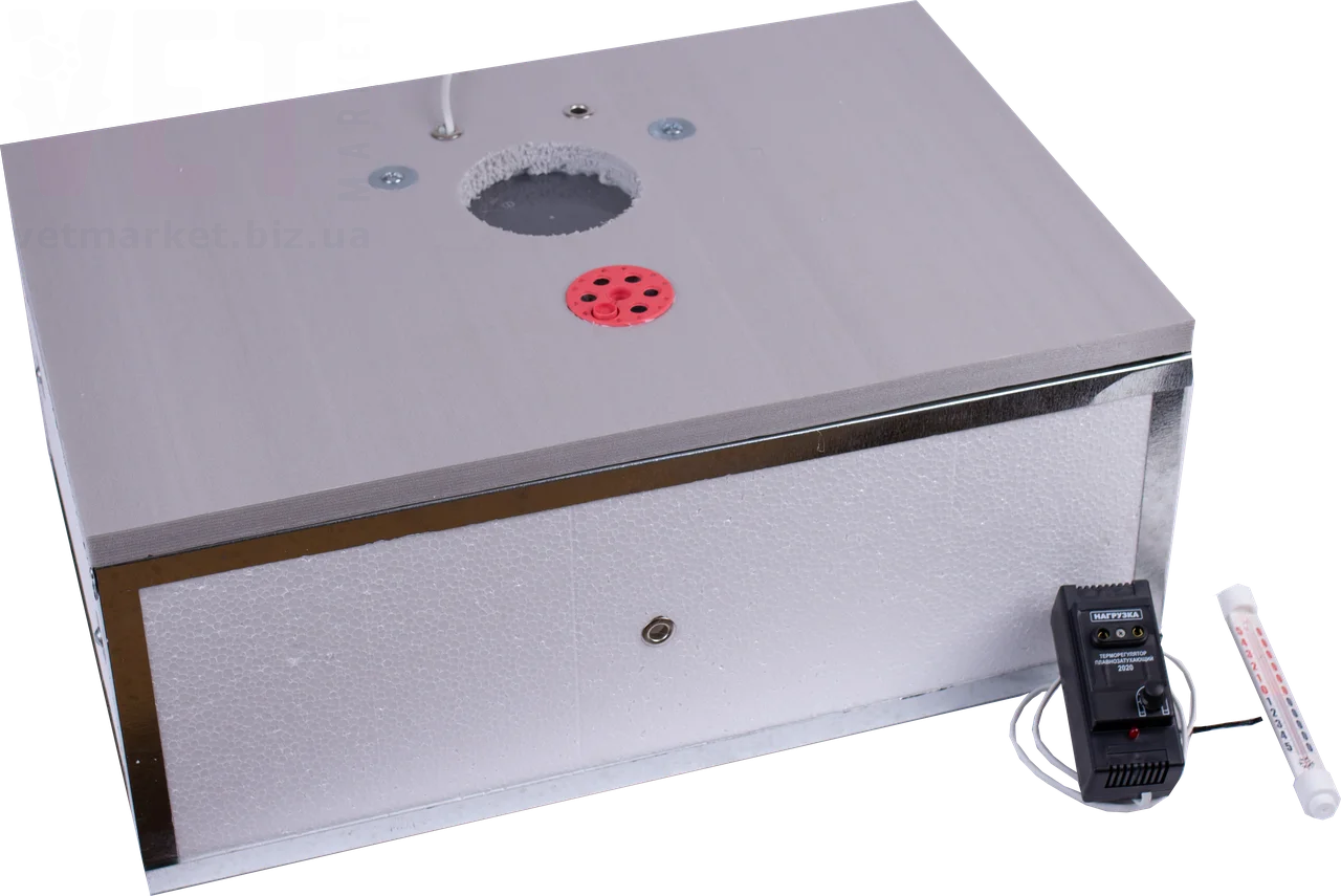 Инкубатор идет с аналоговым терморегулятором и градусником.