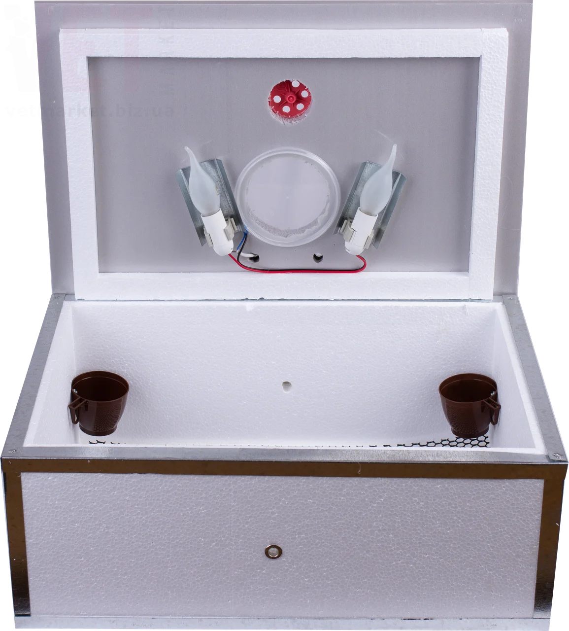 Боковые стороны инкубатора из пенопластового корпуса с металлическим уголком. Низ у инкубатора пенопластовый, крышка – полистирол. В крышке находится смотровое окошко.