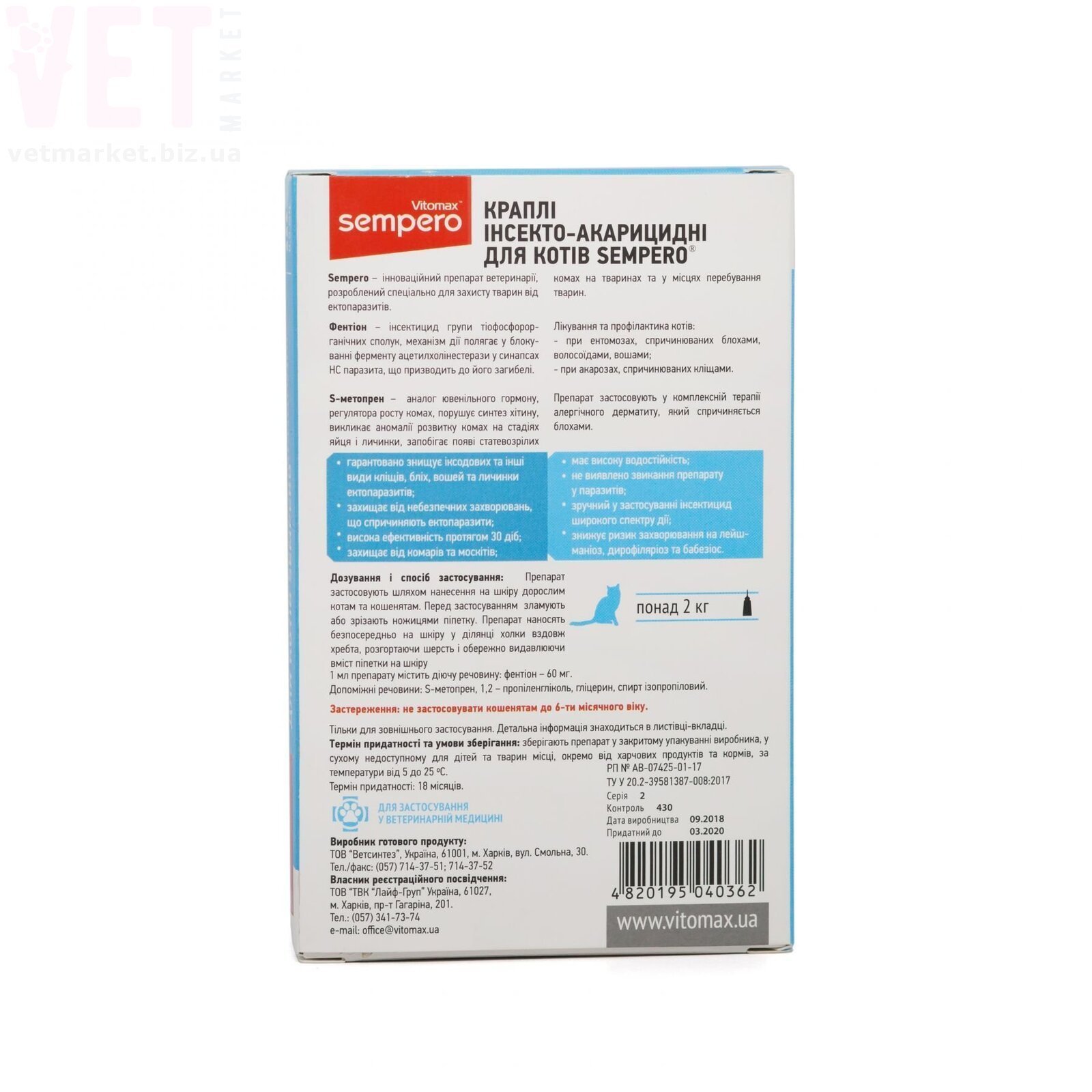Семперо краплі для котів, 3 піп.*0,5 мл, Vitomax