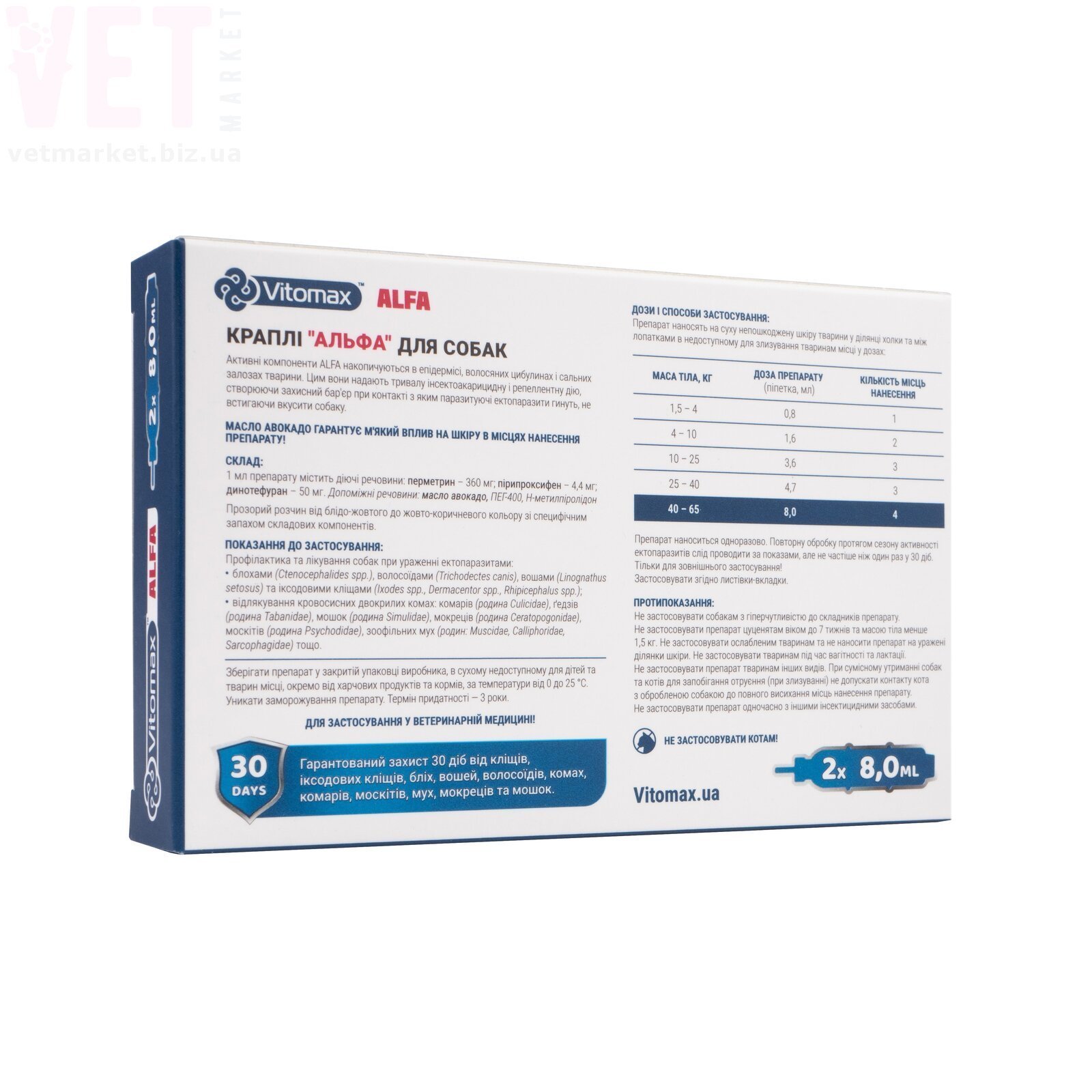 Альфа краплі для собак 40-65 кг, 1 піп.*8 мл, Vitomax