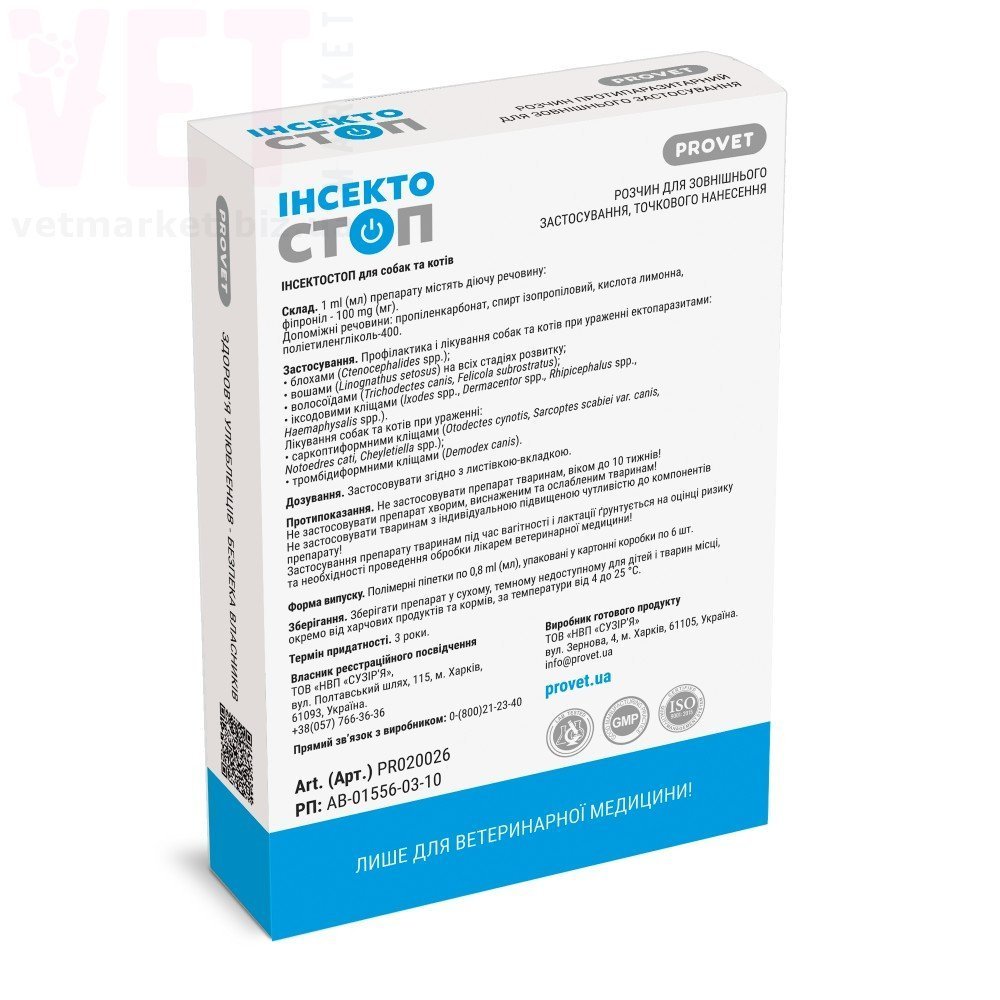 Інсектостоп краплі для собак та котів, 1 піп.*0,8 мд, ProVET