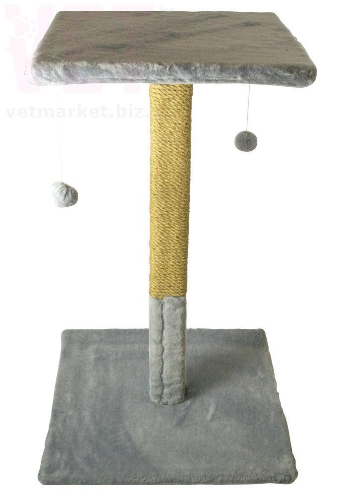 Дряпка Пухнастики великий стовпчик з полицею, сіра, 75*45 см