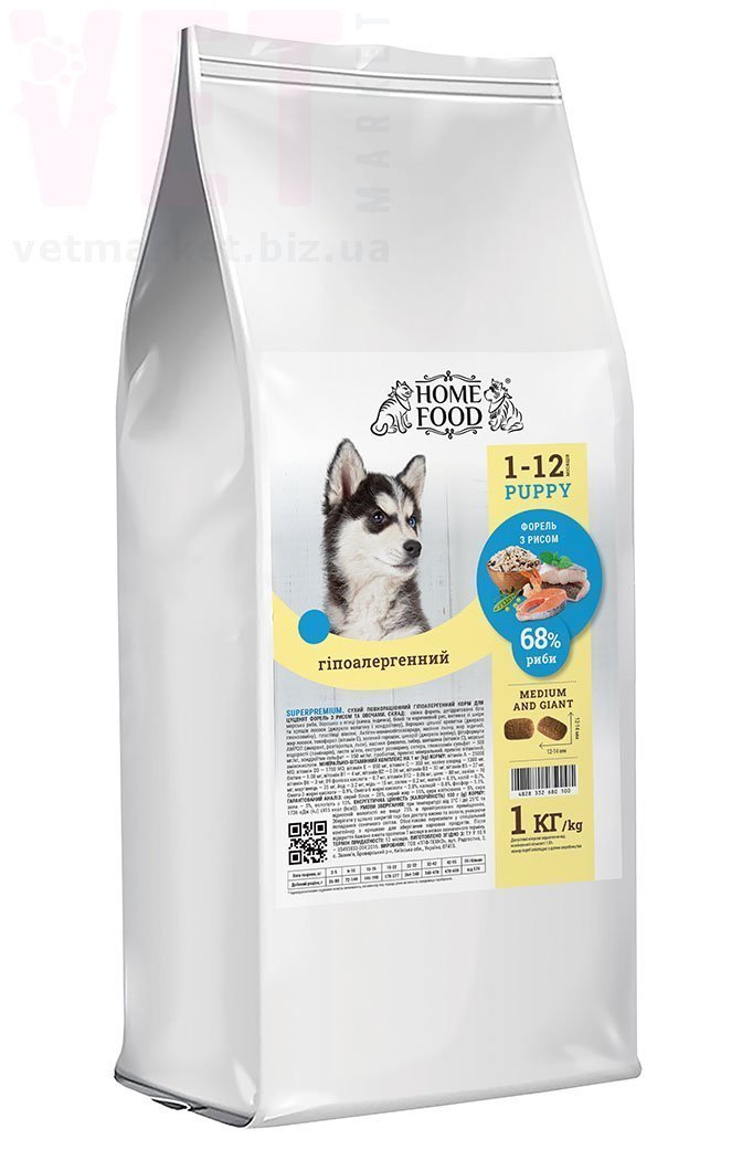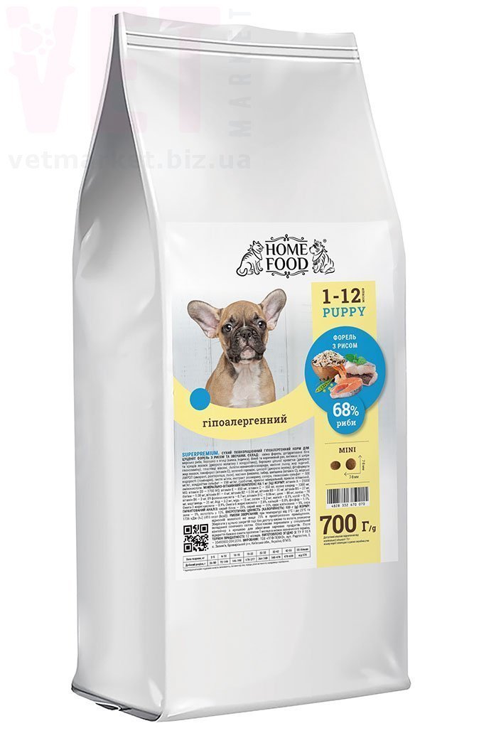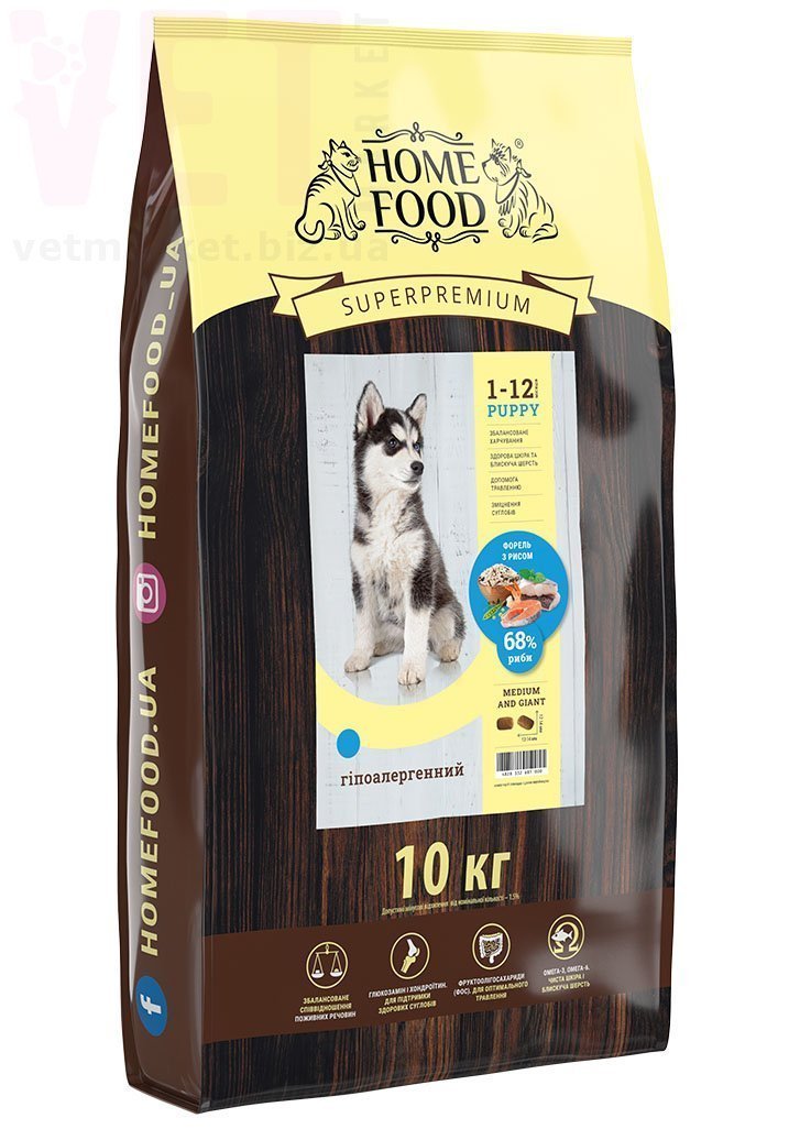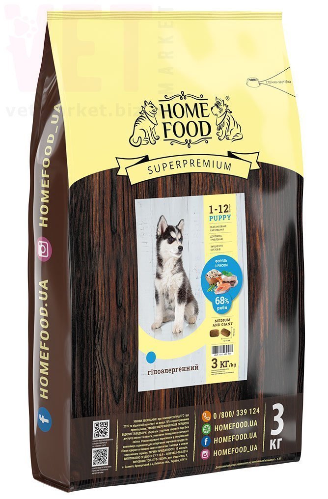 Полнорационный гипоаллергенный сухой корм для щенков «Форель с Рисом и Овощами»