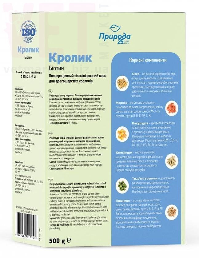Рецептура корму «Кролик + біотин» розроблена на основі рекомендацій провідних фахівців з розведення кролів.