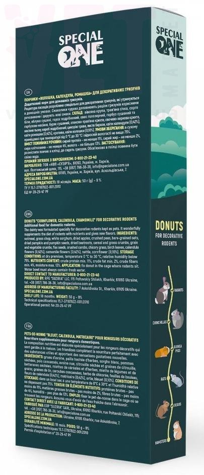 Speciаl One Волошка, календула, ромашка пончики для декоративних гризунів, 50 г