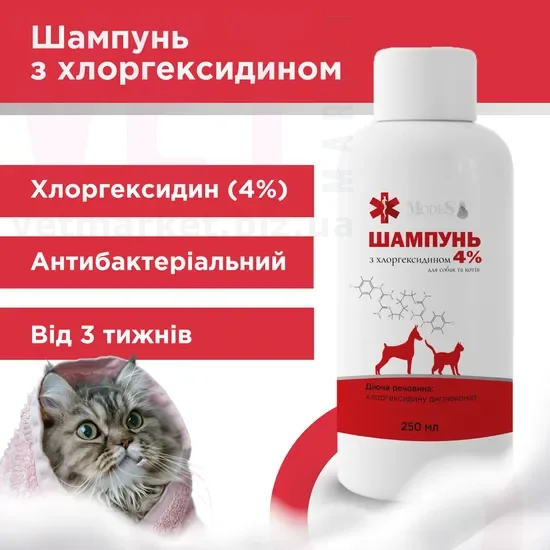 Шампунь антибактеріальний із хлоргексидином 4%, 250 мл, Modes