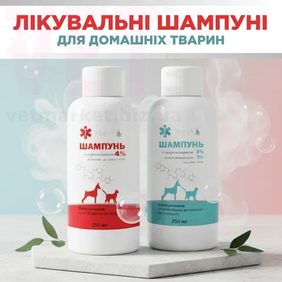 Дозування та спосіб застосуванняЗмочити шкіру та хутро тварини теплою водою, починаючи від шиї. Спочатку нанести шампунь на патологічні ділянки шкіри, потім на здорові ділянки, у кількості 1–2 мл/кг маси тіла, залежно від розміру та густоти шерсті (для дрібних собак з короткою шерстю приблизно 2 мл, для великих собак з довгою шерстю — 30 мл, столова ложка містить 10 мл), та, масажуючи, розподілити шампунь по всій глибині хутра до шкіри.