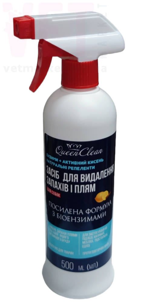 Інструкція з застосування: перед використанням Queen Clean необхідно удалити залишки рідини та твердих загрязнень. Попередньо рекомендується провести тестування поверхні, що обробляється, на стійкість кольору. Для цього потрібно нанести невелику кількість засобу на ділянку та зачекати 5-10 хвилин. Промокніть поверхню чистою білою салфеткою та огляньте її: якщо буде видно кольорові плями або розводи води - НЕ ВИКОРИСТОВУВАТИ Queen Clean. Якщо тестова поверхня залишиться незміненою, можна приступати до обробки забрудненої ділянки. Обильно нанести засіб на плями, через 10-15 хвилин витерти залишки пятна салфеткою та дати поверхні висохнути природним шляхом, після чого запах і плями повністю зникнути.