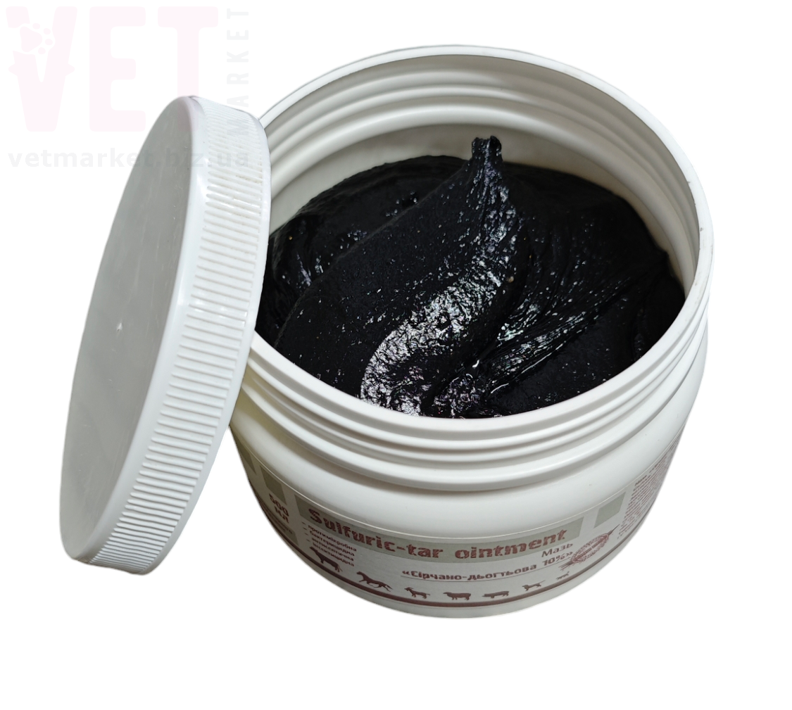 Мазь серно-дегтярная 10% используется для лечения животных при экземах, дерматитах, чесотке и других болезнях кожи.