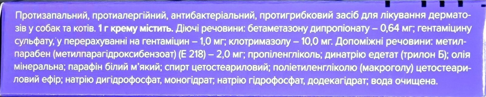 действующие вещества: бетаметазона дипропионата (в пересчете на 100% вещество) - 0,64 мг гентамицина сульфата (в пересчете на безводный гентамицин) - 1 мг клотримазола (в пересчете на 100% вещество) - 10 мг.