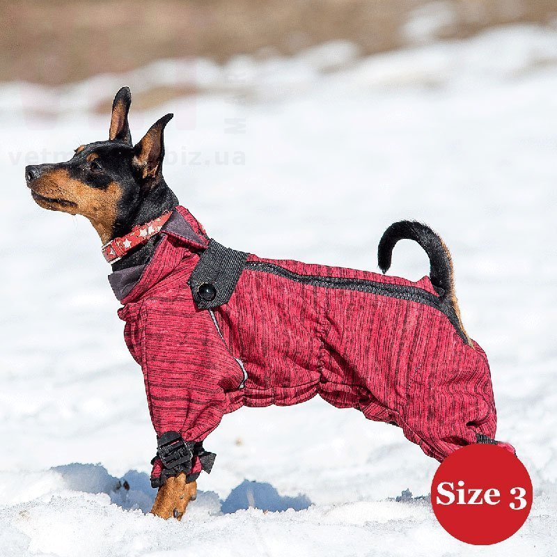 Для зручності одягання в області холки розташована гумка з гудзиком, а застібка знаходиться на спині, що дозволяє швидко одягати та роздягати Вашого вихованця, також комбінезон не сковує рухи та за рахунок фіксаторів-утяжок на штанинах легко регулюється їх довжина.
