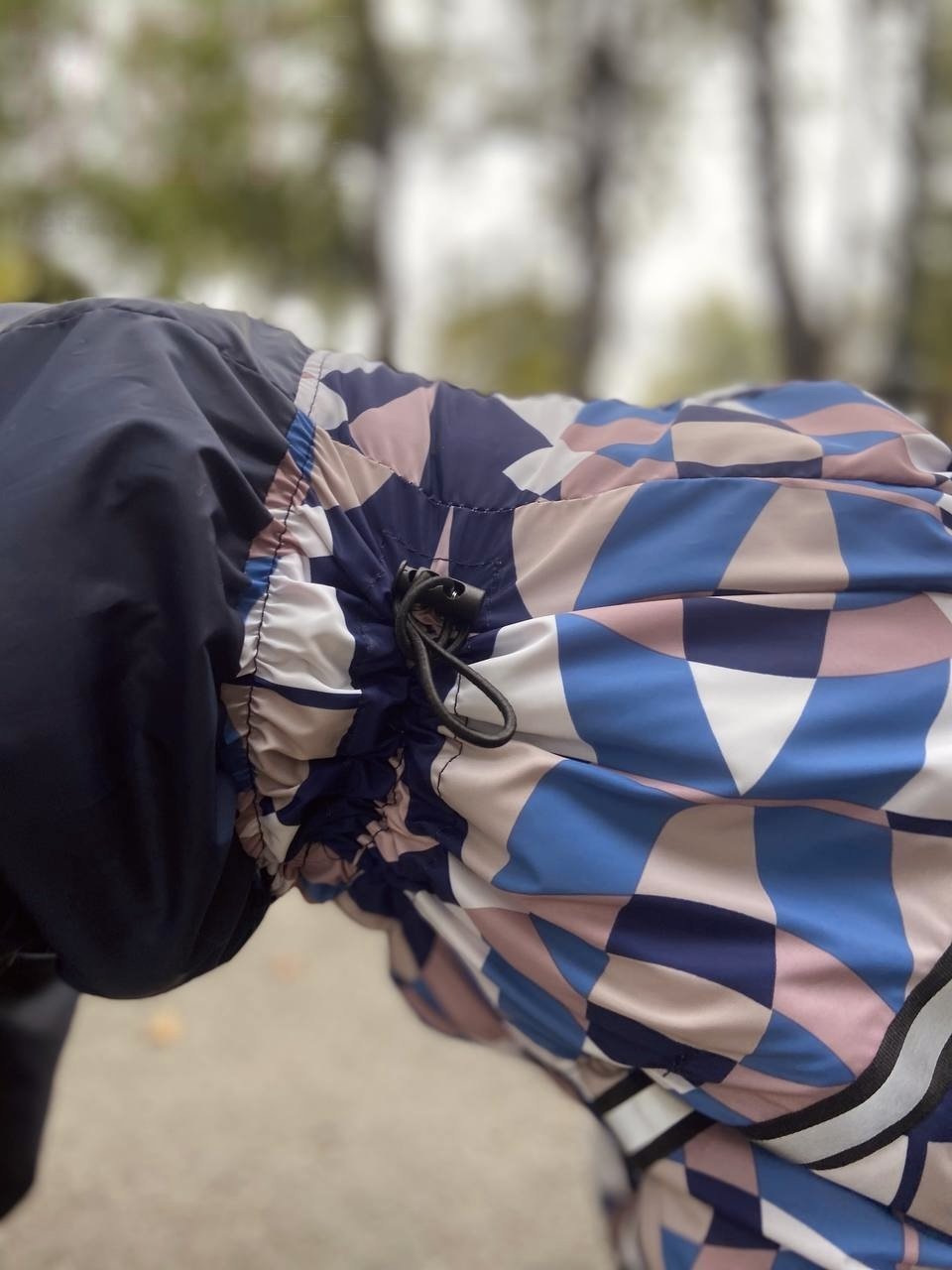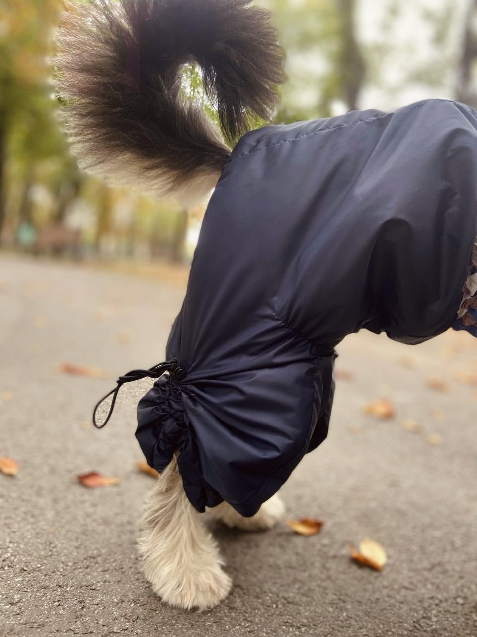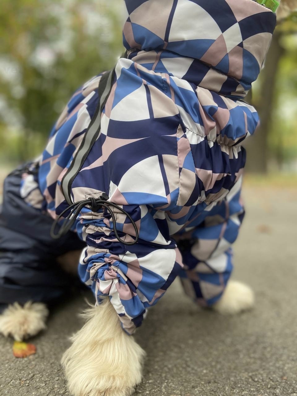 Цей дощовик не лише стильний та яскравий, але й надзвичайно зручний для вашого улюбленця. Він оснащений утяжками на лапах, які дозволяють регулювати довжину рукава, а також утяжками на грудях