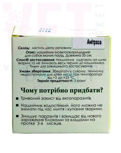 Нашийник для дрібних собак з амітразином, 35 см, Базальт