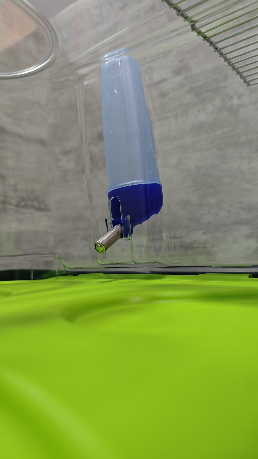 - клетка снабжена беговым колесом, внешней поилкой, полкой с лестницей и чашей.
